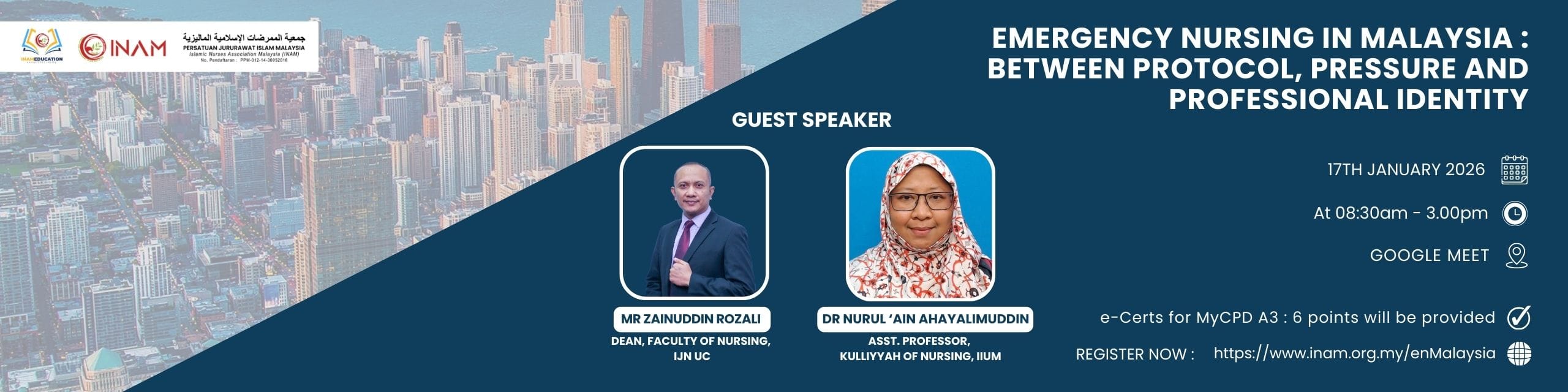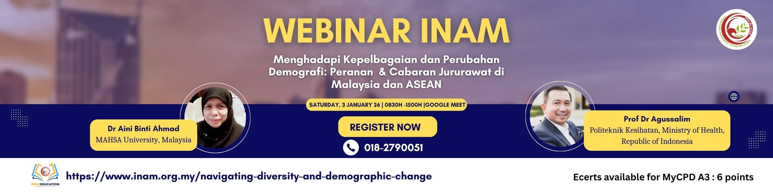 Daftar sekarang menjadi ahli PERSATUAN JURURAWAT ISLAM MALAYSIA (INAM). Klik butang pendaftaran dibawah.